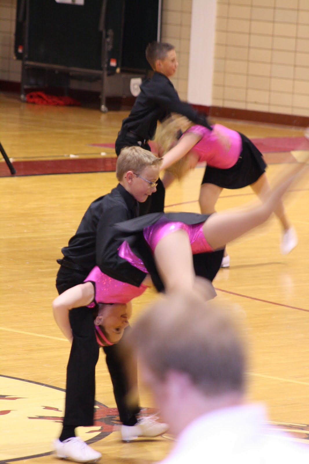 And this was our tumble......she went to do a cartwheel and landed on her head. She got right up and went on with the show, but it was funny that I caught it on film.